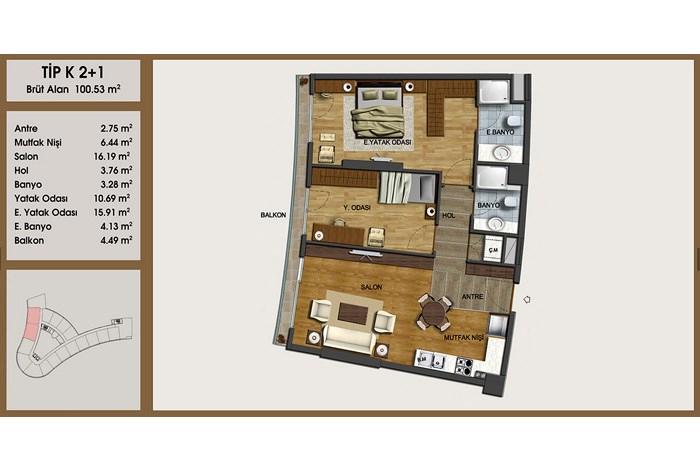 4.500 m2 alan üzerinde tek blok olmak üzere, 1+1, 2+1, 2+1 dublex ve 3+1 dublex daire seçenekleri, Çayırova Güzeltepe’ de, Gebze Organize Sanayi Bölgesi, Mutlukent ve Yapı Kredi Bankacılık Üssü’nün yanında, Akbank Bankacılık Üssü ve Kuveyttürk Bankacılık Üssü yakınında, İstanbul Park Pistine ve Sabiha Gökçen Havalimanı’na 15 dakika mesafede